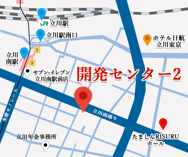 | 開発センター2 | 〒190-0022 東京都立川市錦町2丁目4番2号 CB立川ビル4階 アクセス TEL 042-521-7581(代表) FAX 042-521-7586 |