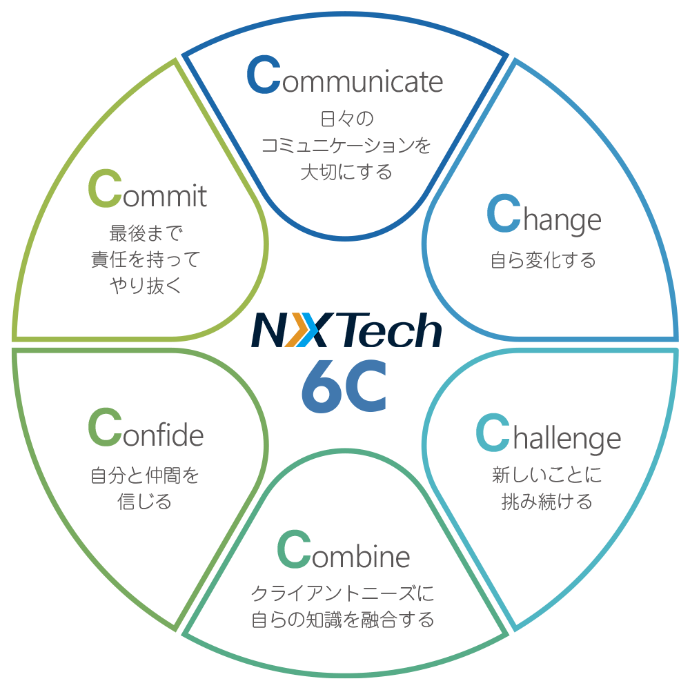 私たちNXTechは、企業のICT活用を支援するプロフェッショナル集団として、新しい価値でお客様、従業員、ステークホルダーとの信頼関係を築き、ともに成長・発展を目指して参ります。