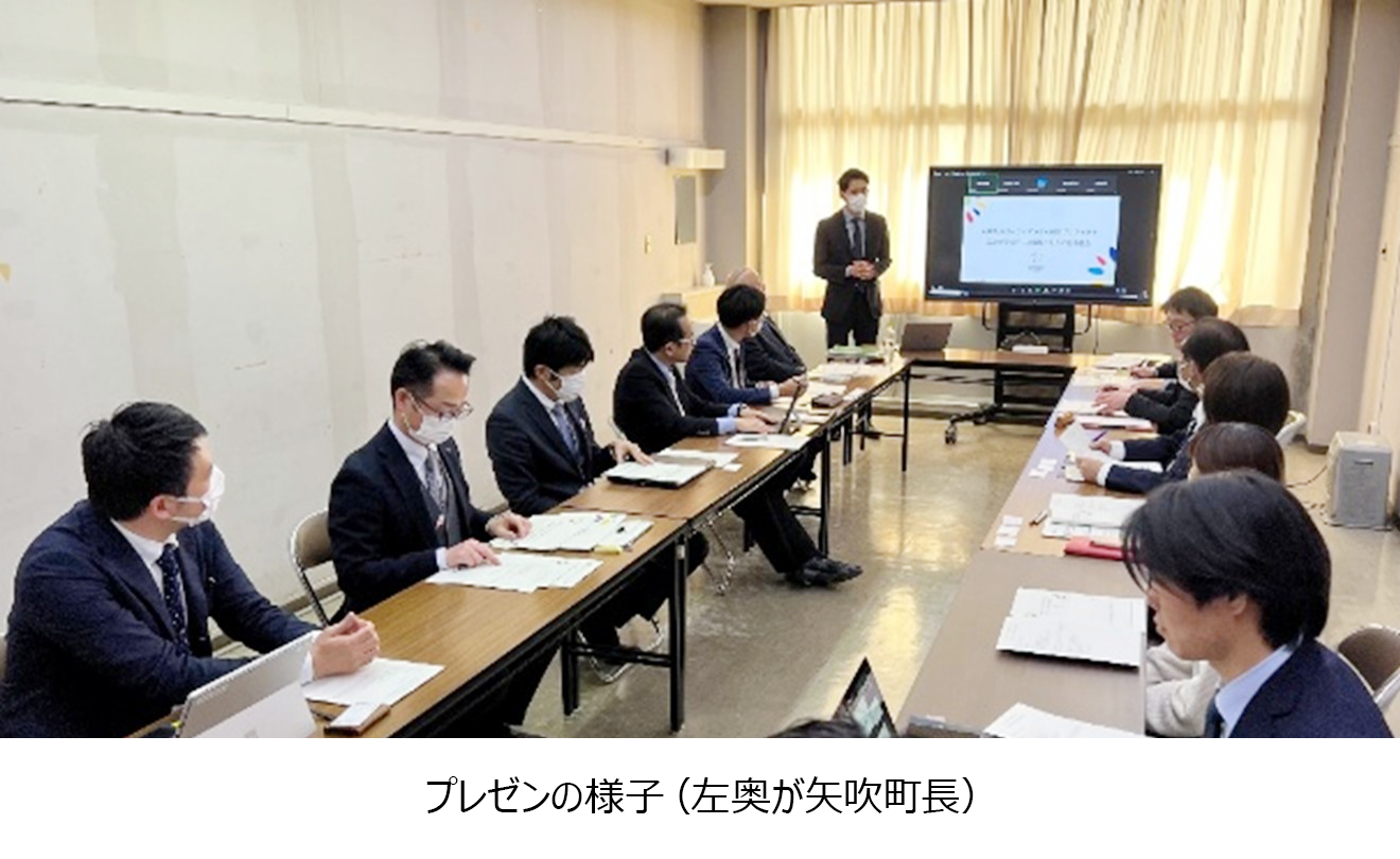2025年2月17日に矢吹町町長、副町長、教育長の三役を含めた役場の方々へ、矢吹町内の4つの小学校で「みまわり伝書鳩ヘルスケアシステム」によるバイタルデータ取得実証実験の結果について報告をしました。